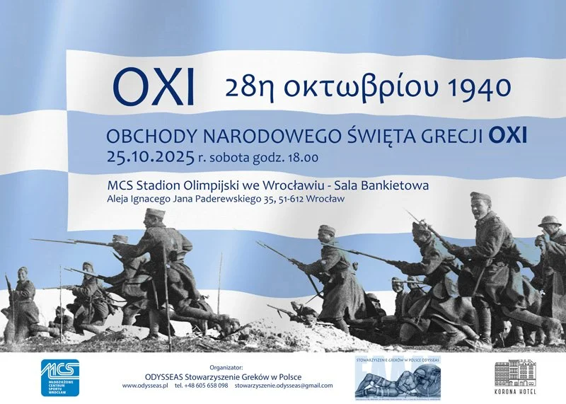 uroczyste obchody Narodowego Święta Grecji OXI 28 października 2023 r. w sobotę o godz. 18.00 które odbędą się we Wrocławskim Centrum Kongresowym przy Hali Stulecia.